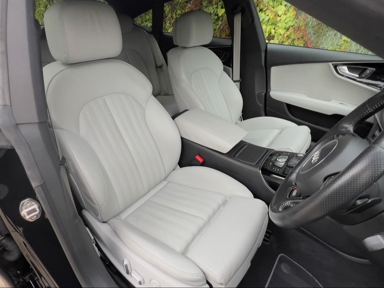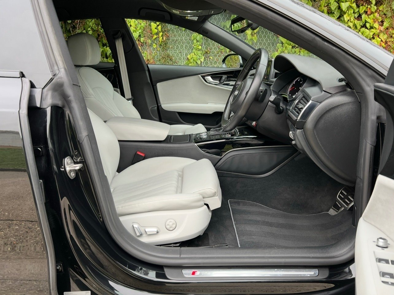 Beautifully Presented Audi A7 3.0 TDI S-Line Black Edition, In Black With An Ivory Leather Interior, Full Service History, 2 Keys, Full Leather Electric Seats With Drivers Memory, Heated Seats, Full Leather Multifunctional Steering Wheel, Dual Zone Climate Control Front And Rear, Multi Media Interface, CD Player, FM, DAB, Bluetooth Connectivity, SatNav, Cruise Control, Speed Limiter, Audi Drive Select, Front And Rear Parking Aid, Electric Windows, Privacy Glass, Electric Tailgate, 4 New Tires, Wheels Have Just Been Refurbished.