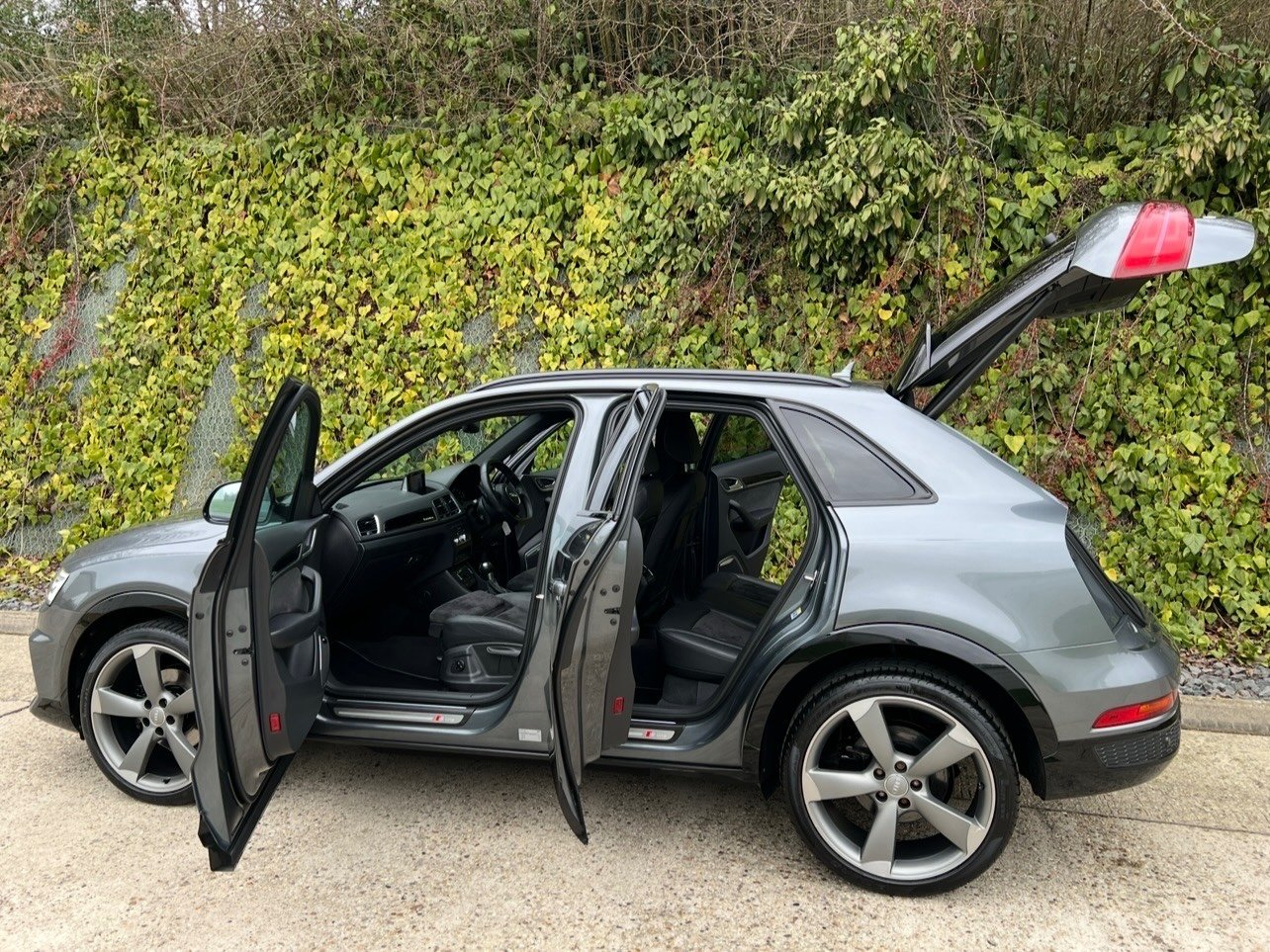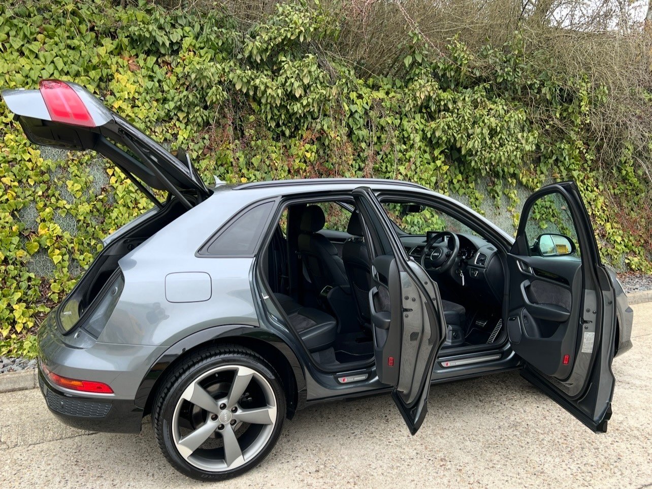 Beautifully Presented Audi Q3 2.0 TFSI Quattro S-Line Black Edition In Pearl Daytona Grey With A Leather And Alcantara Interior, Full Service History, 4 Pirelli Tires, 2 Keys And A Big Spec, Leather And Alcantara Heated Seats, Full Leather Multifunctional Steering Wheel, SatNav, Multi Media Interface, CD Player, DAB, FM, AM, Bluetooth Connectivity, BOSE Surround Sound System, Audi Drive Select, Cruise Control, Speed Limiter, Reversing Camera, Front And Rear Parking Aid, Rain Sensors, Xenon Lights, Automatic Day Running Lights, Privacy Glass, Electric Windows, Electric Folding Heated Mirrors, Electric Tailgate. UK HOME DELIVERY AVAILABLE. FINANCE AVAILABLE.