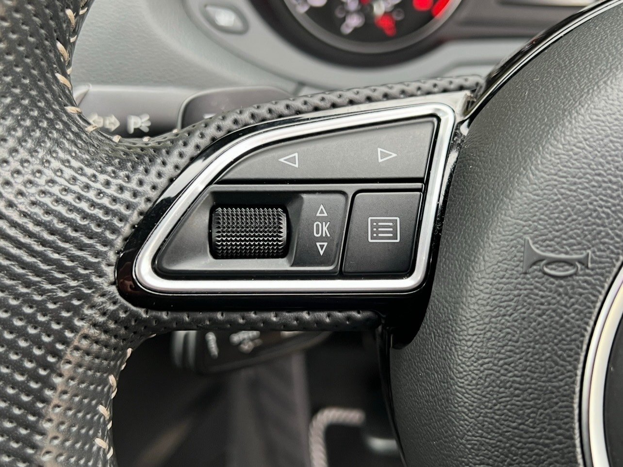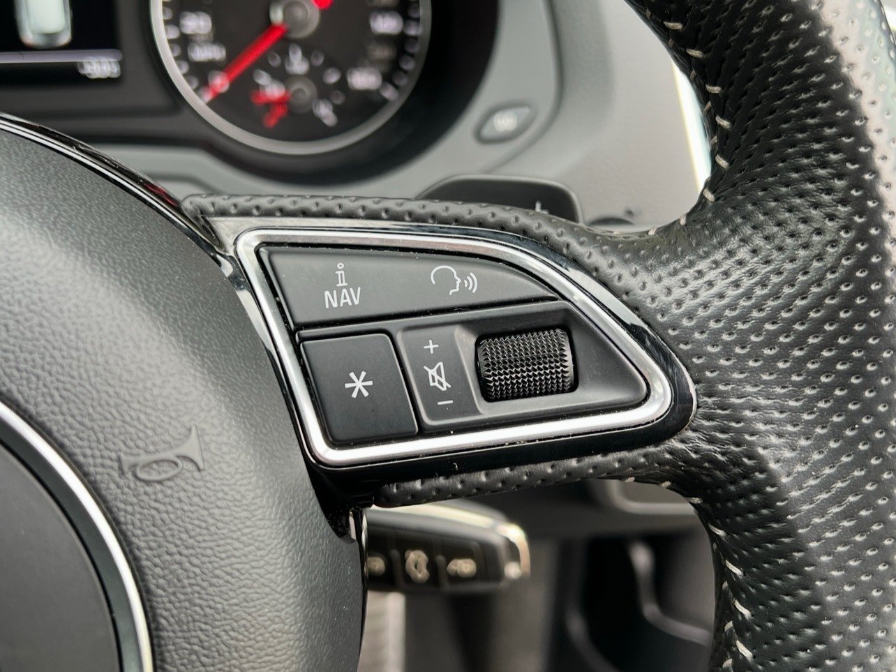 - Flat-Bottomed 3-Spoke Perforated Leather-Trimmed Multifunction Steering Wheel-Contrast Stitching with Paddles