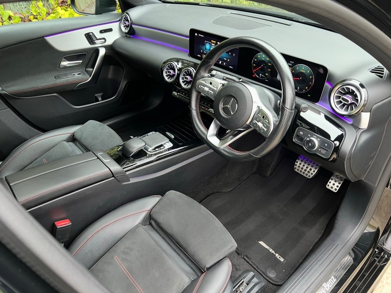 Beautifully Presented Mercedes A200 Premium Plus With Full Main Dealer Service History In Black With A Black Leather And Alcantara Interior Paired With Red Stitching, Electric Heated Memory Seats, Seat Kinetics, Full Leather Multifunctional Steering Wheel, Dual Zone Climate Control, Multi Media Interface, Bluetooth Connectivity, SatNav, Adaptive Cruise Control, Speed Limiter, Multiple Driving Modes, Multiple Display Settings, Reversing Camera, Parking Aid, Rain Sensors, Matrix Headlights, Xenon Lights, Automatic Day Running Lights, Keyless Entry, Electric Windows, Electric Panoramic Roof, Electric Roof Blind, Electric Heated Folding Mirrors, 4 Matching Bridgestone Tires,